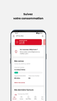 - Maîtrisez votre budget où que vous soyez, en France ou à l’étranger, grâce au suivi détaillé de vos consommations pour l’ensemble de vos lignes Mobiles et Box SFR