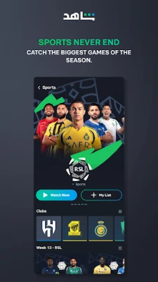 Catch the thrill of the Roshn Saudi League and other international sports and tournaments, all in stunning HD (available in MENA only).
