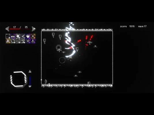 SHAPE HUNTER is a 2D roguelike action game in which players defeat an infinite number of monsters.