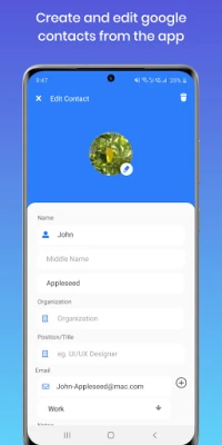 You can also backup your Google Contacts with our app. In addition, our intuitive interface and strong integration helps you edit and share contacts directly from Gmail™ and Google Contacts, without having to login to your app dashboard.