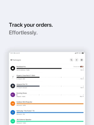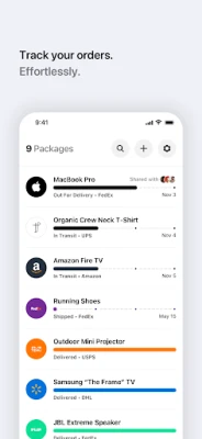 • Add your own tracking numbers to manually track orders not linked to your email.