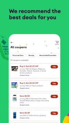 - Personalized coupons with our built-in coupon recommender.