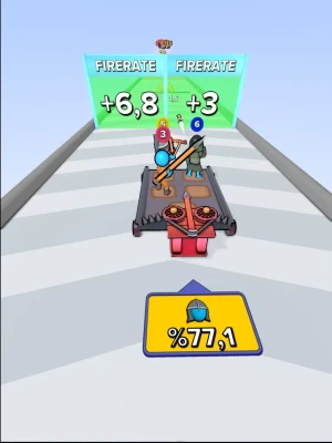 Playing this addictive runner game is very easy. You can move your cart with swerves. Along the way, there will be stickmen in different levels. You can shoot them to level up or directly add them to your cart to make them a part of your gang. It's all up to you; your game, your strategy! Collect your stickmen and watch them merge in your cart. When you have two stickmen at the same level, they merge with each other and become a higher-level stickman. Stickmen in different levels represent different time periods. For example, level 1 stickmen throw rocks while level 3 stickmen throw spears, and so on. You'll have many evolutions like this! Isn't this incredible? Collect stickmen to upgrade your cart as well. With the improved cart, you'll have a fantastic weapon to accompany you and your gang. To evolve your stickmen, shoot at the gates and get upgrades.Take the fire rate to shoot faster, and get the range to shoot farther. It’s that easy, enjoy!