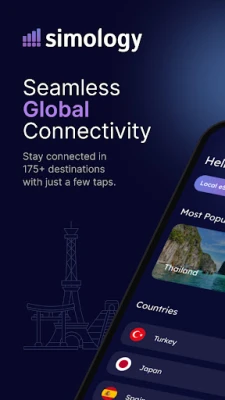 Download the Simology eSIM app and enjoy seamless global connectivity with flexible travel eSIM data plans. Stay online with secure eSIM data profile, available instantly in over 200 destinations. If you need a seamless eSIM service, choose Simology.