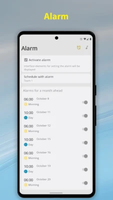 Different alarm times for different shifts. The alarm sound is the same as on the system alarm.