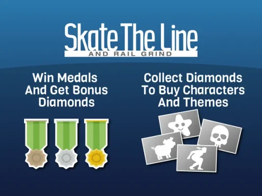 + Skate The Line + Collect Diamonds + Several Skate Characters + Several Skate Themes + Several Skateboards + Endless Skateboarding Fun + Avoid The Spikes