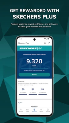 *Skechers Plus™ loyalty dashboard with access to points earning activities, information on benefits, tier status, and rewards, as well as your member ID for in-store sign in. *Instant Search to quickly locate your perfect style, color and size! *Barcode Search to help you find your size and additional colors when in store. *Receive special offers from Skechers in your app Inbox *Create wishlists of your favorite items *Store Locator helps you find your neighborhood Skechers retail store. *Curbside and in-store pick-up: See if the shoes you want are available before visiting your Skechers store. Buy on the app and pick up in store or curbside.