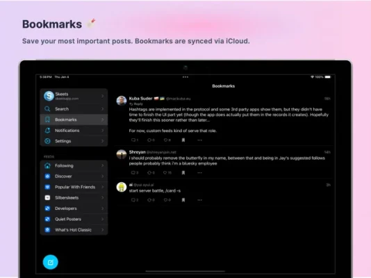 Skeets is a native Bluesky app that supports both iOS and iPad OS.