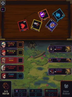 Tactical dice-rolling roguelike combat. Take control of 5 heroes, each with their own unique dice. Fight your way through 20 levels of monsters and try to take on the final boss. If you lose a single fight you have to start over so be careful (and lucky!).