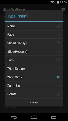 (2) Select [Slide Wallpaper](this app) as wallpaper via gear icon.