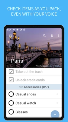 🎤 Use your voice to interact with the app while it tells you what to pack next. Just reply with "ok", "yes" or "check" to cross out the current item and proceed to the next