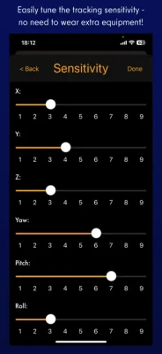 SmoothTrack 2.0 uses the head and eye tracking AR capabilities of your phone to provide the simplest and best head tracker for 6 degrees-of-freedom head movements in your sim games.