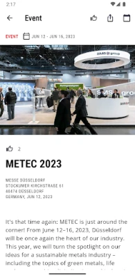 The SMS group #Connect App provides you with information about up-to-date news, orders, innovations, and events in and around SMS group. Get all the latest topics at a glance and filter the content based on what you want to read.