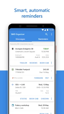 SMS Organizer, a Microsoft Garage project, is the smartest of all SMS apps. It automatically organizes your inbox, sets reminders and keeps track of them, all this magic happens on your device safely, without any of your personal data being uploaded anywhere online. Never miss anything important—switch to SMS Organizer as your default SMS app to experience it now!