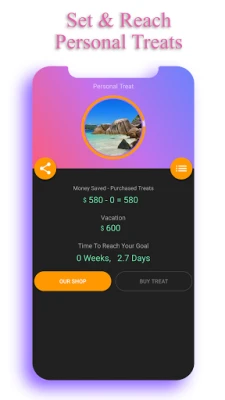 ★ See how much money you saved by not drinking and set a custom treat to buy from your savings.