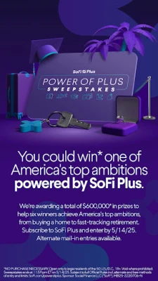 • Enter to win prizes that could fund your biggest financial ambitions through SoFi's member sweepstakes.