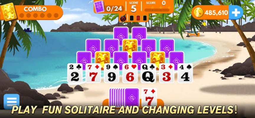 Relax and play Solitaire Mystery games to your heart’s content even OFFLINE! Enjoy the smoothest gameplay with 60+ great graphics and amazing theme rooms. Relax with tropical vibes in this tiki solitaire Tripeaks. Solitaire resort is a very popular theme giving tropical vibes.