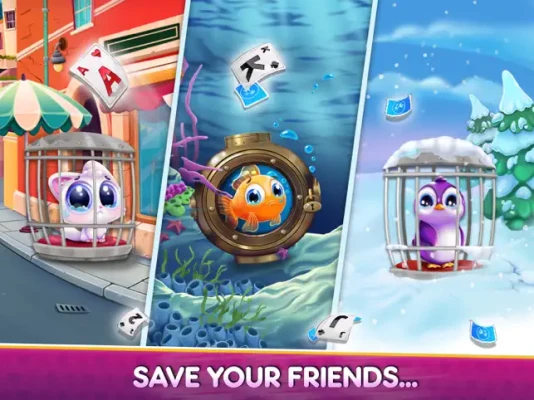 Solve Tri Peaks Solitaire puzzles and discover colorful islands and rescue cute animals. Beautiful and wonderful islands are waiting for you and captive animals are waiting for you to save them. The beautiful cards of each island allow you to immerse yourself in this addictive Tri Peaks solitaire game.
