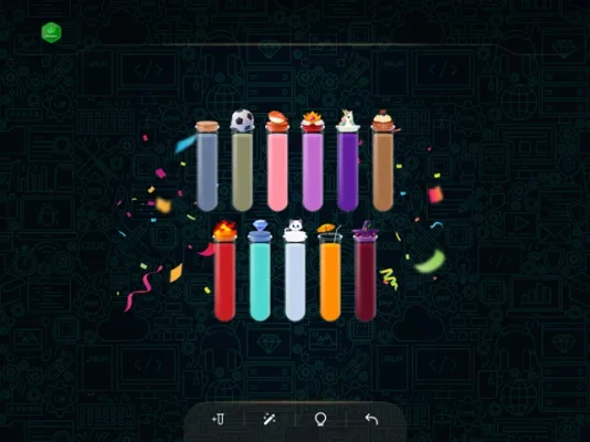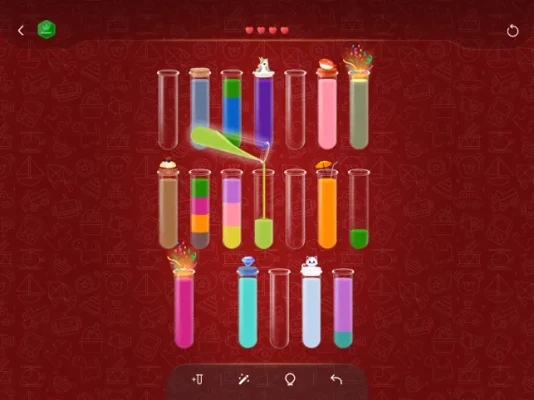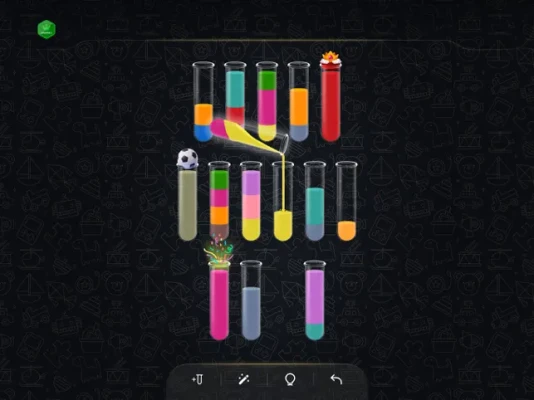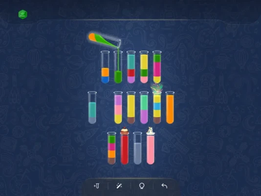 - Tap on a bottle to pour its contents into another one, but remember, you can only pour water of the same color, and each bottle should contain only one color.