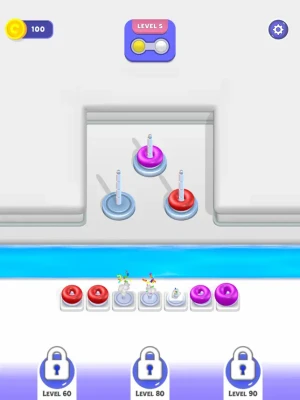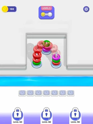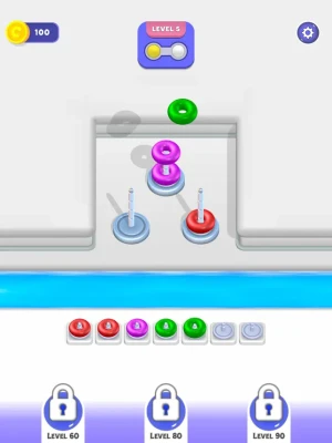 Sort Merge 3D is the kind of game that's bound to captivate you for an extended period! This addictive pastime invites you to immerse yourself in the art of problem-solving through the meticulous arrangement of vibrant hoops. Get ready for a mental workout as you tackle the challenge of stacking these colorful rings. You'll need to employ your cognitive skills, craft strategies, and anticipate each move in order to succeed.