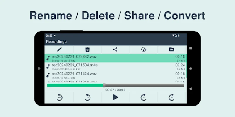 • in-app audio file converter (WAV / M4A to M4A / WAV)