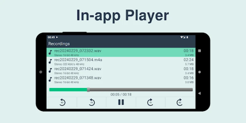 • in-app audio player (listen to the recordings)