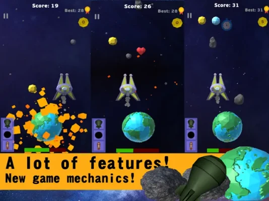 Earth is in danger. A lot of asteroids with different size and speed are moving towards to the Earth. You are the only hope to save our planet and all the life on it.