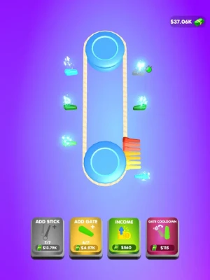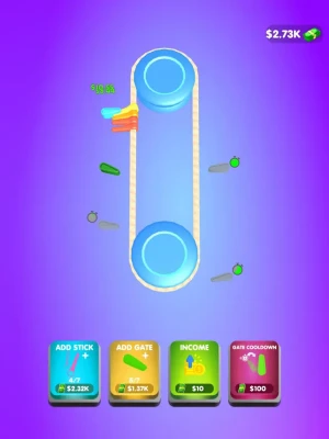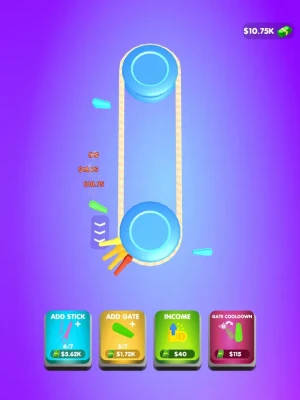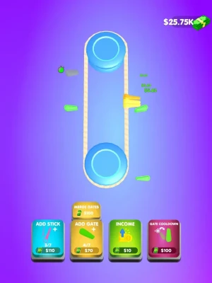 Spin Around 3D is the ultimate endless clicker game where you can't stop spinning! Tap the screen to change the direction of the spinning sticks and gates around the pendulum, and collect money from hitting the gates with your sticks. The more money you earn, the more sticks and gates you can add to your collection, and the more you can merge them to increase their power and earn even more money!