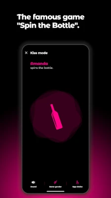 Everything is like in the usual "Spin the bottle" game. Gather your friends at the house party. During the game, everyone, after meeting, is able to get to know each other better and become good friends. Sit in a circle, as in many traditional board games, and take turns spinning the bottle in the “Spin the bottle” kissing game. Whoever the bottle points to - he’ll get a kiss. And you can always feel as if you are spinning a real bottle, with settings that allow for manual selection of the player the bottle points to, as well as realistic glass spinning sound effects. Kiss and meet.