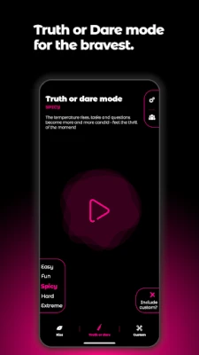 ❤️🔥 Different modes: Kiss, Truth or Dare, Custom.