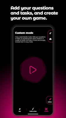 It allows you to create your own set of questions or dares. You always have a convenient editor of questions and dares at hand, similar to a customizable board game. And of course, you can add any content from the ready-made sets of “Truth or Dare”. After all, you may want to add exactly what you need to your house party.
