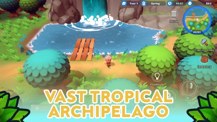 Your island life will be a busy one, so grab your tools and let’s get started! First things first: you’ll need a source of food, a place to spend the night in, and some resources to build a farm and kickstart your tropical journey. So what are you waiting for — time to explore your lands!