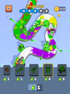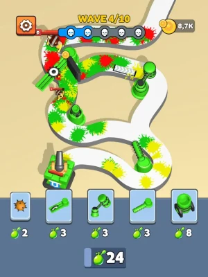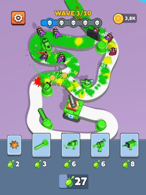 Each enemy you defeat explodes into a vibrant splash of paint, a visual explosion that adds a fun and satisfying touch to each victory. By eliminating enemies, you earn coins that allow you to buy new weapons, upgrade existing ones, and improve your base turret and castle to better withstand the upcoming waves.