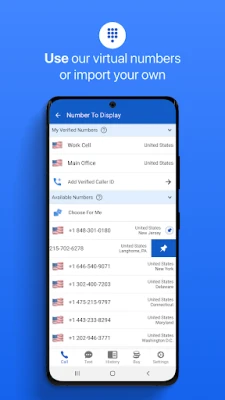 - Number Verification: Easily verify and use your existing numbers (office, home landline, etc.) for calls, ensuring you're protected anytime and anywhere.