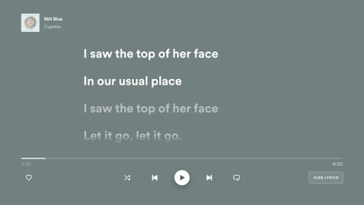 With Spotify on TV, you can enjoy all the music and podcasts you love, right here on the big screen. Flick through artist pages, albums, songs and playlists, and see beautiful artist pages and cover art in TV-sized glory. Control playback with your TV remote, or using Spotify Connect on your phone or tablet. You can even switch between the two, for a totally seamless experience.