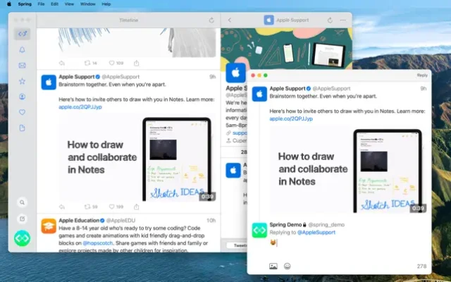 Introducing Spring 5, a new generation of Twitter client for iPhone, iPad and Mac. Features fast performance, truly native design and a highly customizable user interface.