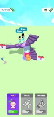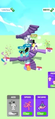 Add new characters to the journey of life! Every color represents a different length of life! You can merge your characters to make them go further and earn more money when you have 3 of them in the same color.