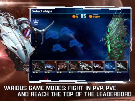 100+ models of warships and hundreds of modules to upgrade them. Choose top combinations for space battles and explore the boundless universe! Unleash the power of your fleet with ship and faction synergies!