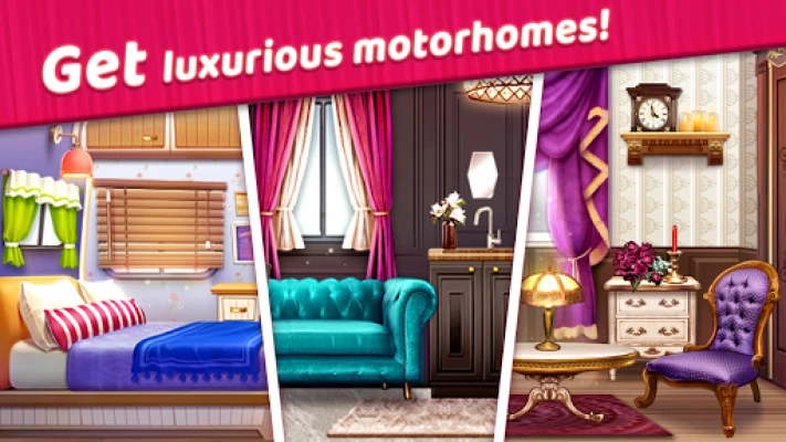 Every update comes with a new look — premium motor-home trailers to design, luxury furniture, costumes from popular movies, charming characters, and new levels!