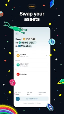 The Status crypto wallet allows you to securely send, store, and exchange Ethereum assets such as ETH, SNT, stable coins such as DAI, as well as collectibles. Confidently take control of your cryptocurrency and digital assets with our multichain Ethereum wallet app, supporting Ethereum Mainnet, Base, Arbitrum, and Optimism. The Status blockchain wallet currently only supports ETH, ERC-20, ERC-721, and ERC-1155 assets; it does not support Bitcoin.