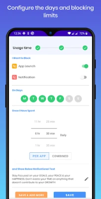🕑 Managing time effectively with a focus on work, study, and personal goals using the app blocker.