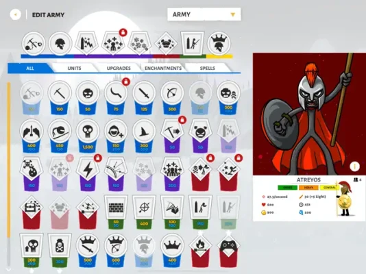In a world called Inamorta where weapons are religion the struggle for dominance continues. The classic cast of nations still thrive. The Swordwrath, Speartons, Archidons, Magikill, and the Giants are joined by many other nations, each with their own unique fighting style such as the “Sicklewrath", from simple farmers to deadly splash damage warriors. The Chaos Empires, ranged unit “Eclipsors” are flying bat-like creatures raining arrows from above. “Shadowrath” are ninja assassins and these are only a small taste.