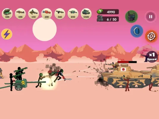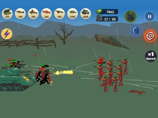 Fight for any country in World War II! Assemble the most powerful army of stickman from machine guns, flamethrowers, cannons and tanks. Create your own story with your strategy and tactics in the real-time strategy game of World War II!