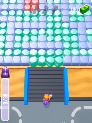 The stones that you break with a pickaxe fold into a shoulder bag. Don't forget to sell it, for the money that you get you will be able to upgrade your pickaxe, speed, and capacity of the shoulder bag.