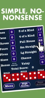 • Simple to play - Just tap on dice to hold them!