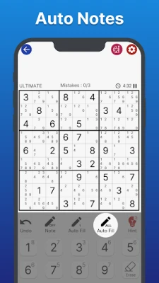 • Automatic update of notes : With every number filled on cell, all corresponding cells will update its’ notes.