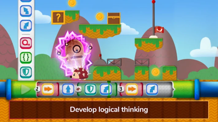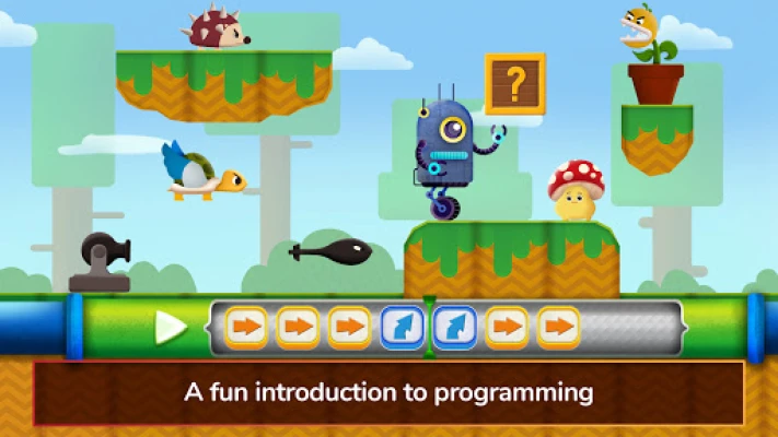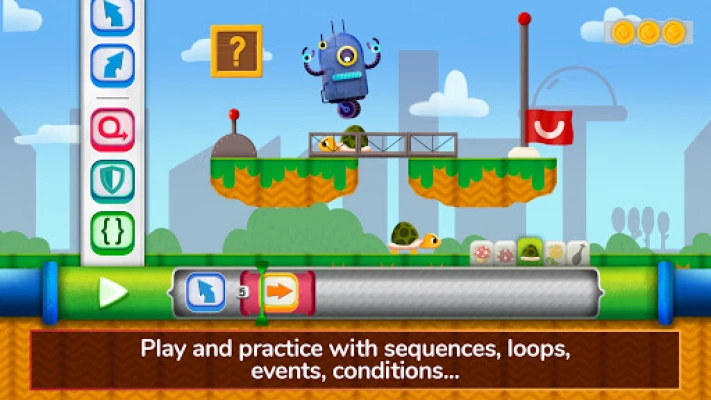 Play and learn freely without pressure or stress. Think, act, observe, ask yourself questions and find the answers. Have fun making the robot move forward, jump and perform all kinds of actions to complete the level.