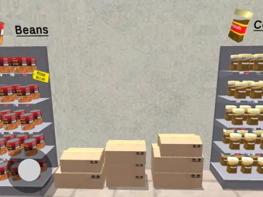In Supermarket empire, order items of your choice, place them on shelves, and open the market door. take cash from the customers and upgrade your electronic store.