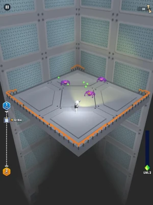 Clear enemies while descending with the elevator and win the game!