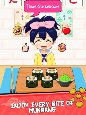 Sushi mukbang ASMR game invites you into a sushi maker - japanese food cooking journey where you play as a sushi chef, running your own sushi restaurant games. Thai cook DIY eating simulation game blends relaxing ASMR mukbang eating games with the excitement of managing a tasty sushi bar. If you are a fan of kawaii food or love exploring carnival fair food maker games, this sushi roll ASMR food game is the choice to fulfill your sushi master chef dream.